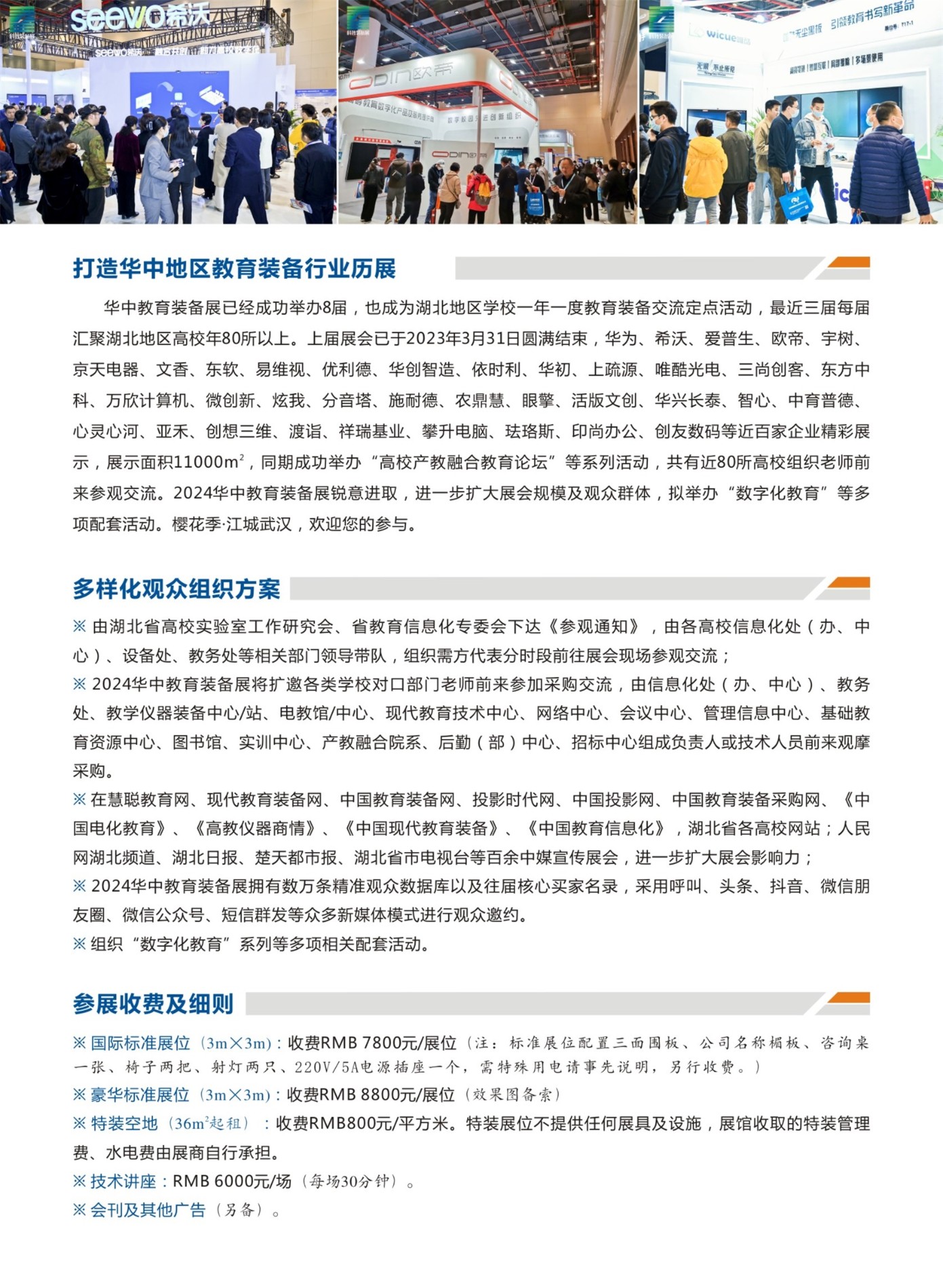 华中教育装备展已经成功举办8届,也成为湖北地区学校一年一度教育装备交流定点活动,最近三届每届汇聚湖北地区高校年80所以上。上届展会已于2023年3月31日圆满结束,华为、希沃、爱普生、欧帝、宇树、京天电器、文香、华初、上疏源、东软、易维视、优利德、华创智造、依时利、唯酷光电、三尚创客、东方中科、万欣计算机、微创新、炫我、分音塔、施耐德、农鼎慧、眼擎、活版文创、华兴长泰、智心、中育普德、心灵心河、亚禾、创想三维、渡诣、祥瑞基业、攀升电脑、珐珞斯、印尚办公、创友数码等近百家企业精彩展示,展示面积11000,同期成功举办“高校产教融合教育论坛”等系列活动,共有近80所高校组织老师前来交流。2024华中教育装备展锐意进取,将进一步扩大展会规模及观众群体,拟举办“数字化教育”等系列配套活动。樱花季·江城武汉,欢迎您的参与。
