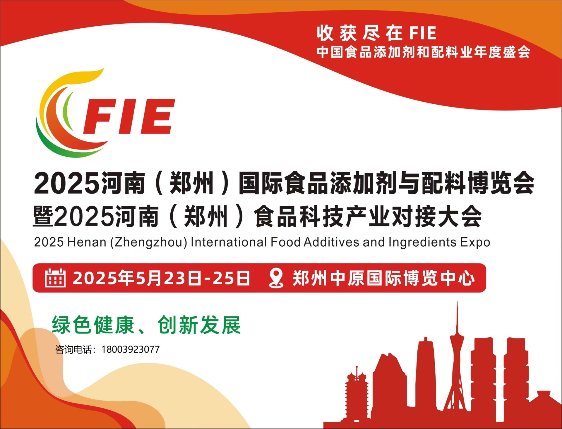 河南作为中国人口大省,也是食品工业及添加剂、配料行业生产大省。为加快河南省食品添加剂和配料产业发展与科技创新,有力地推动食品添加剂和配料产业高质量发展,经研究由河南省食品科学技术学会主办的2025中国(郑州)国际食品添加剂和配料博览会将于2025年5月23-25日在河南郑州中原国际博览中心举办!诚邀中国食品添加剂产业领域同仁共襄盛举!